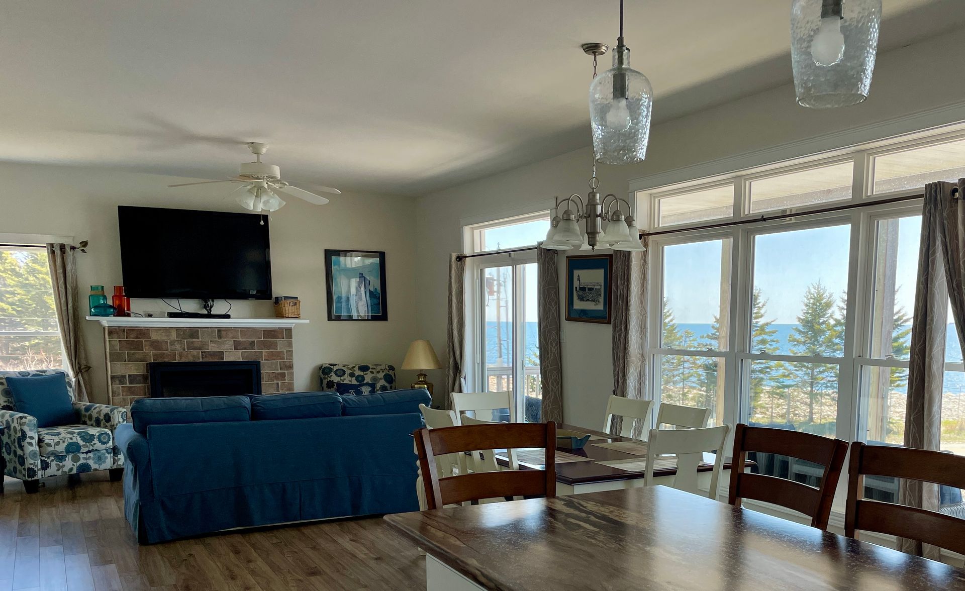 SeaStar is one of three TideWatch Ocean Suites located on the Quietside of Mount Desert Island in the town of Southwest Harbor. Just steps away from the Atlantic Ocean, the property borders the Seawall Entrance to Acadia National Park and adjoins a pine forest and a freshwater pond which provides ample opportunities for bird watching and scenic photography. SeaStar is located on the second floor of the TideWatch Suites. The unit can sleep up to 6 individuals with a king bedroom suite with an attached bathroom, a queen bedroom, and a full-size sleeper sofa in the living room. The unit also has a second centralized bathroom, a fully equipped kitchen, a gas fireplace, and a unit-length balcony, (complete with grill and outdoor seating), to enjoy the breathtaking view.