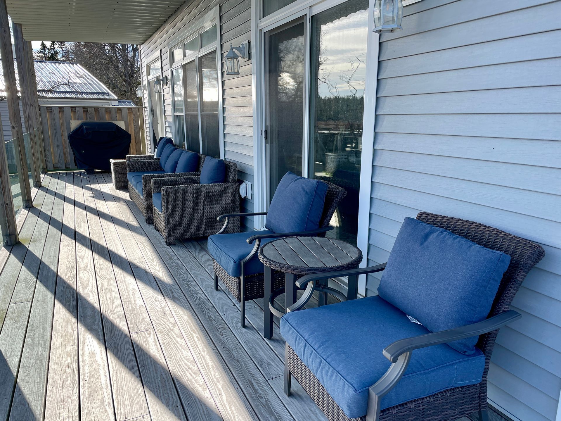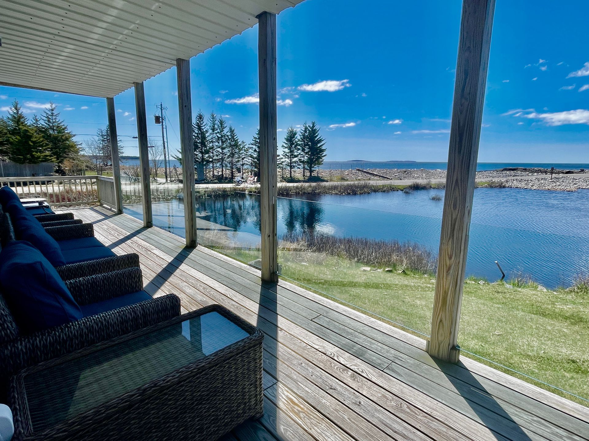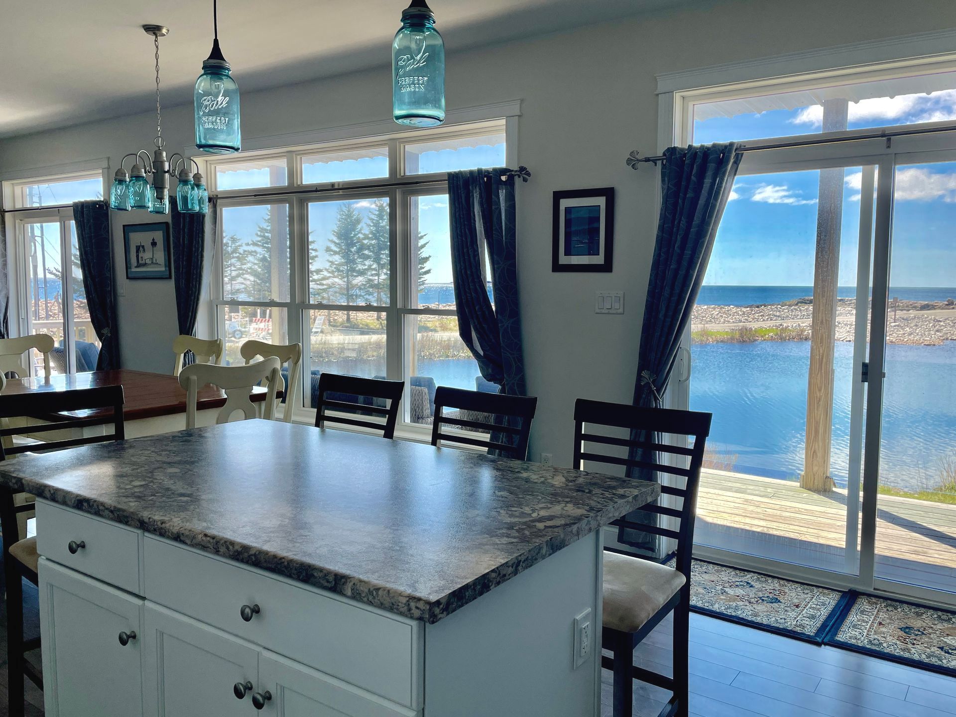 Tidepool is one of three TideWatch Ocean Suites located on the Quietside of Mount Desert Island in the town of Southwest Harbor. Just steps away from the Atlantic Ocean, the property borders the Seawall Entrance to Acadia National Park and adjoins a pine forest and a freshwater pond which provides ample opportunities for bird watching and scenic photography. Tidepool is located on the first floor of the TideWatch Suites. This unit is ADA compliant with a ramp going up to the entrance, a walk-in shower, and lower beds. TidePool can sleep up to 6 individuals with a king bedroom suite with an attached bathroom, a queen bedroom, and a full-size sleeper sofa in the living room. The unit also has a second centralized bathroom with a walk-in shower, a fully equipped kitchen, a gas fireplace, and a unit-length deck, (complete with grill and outdoor seating), to enjoy the breathtaking view.
